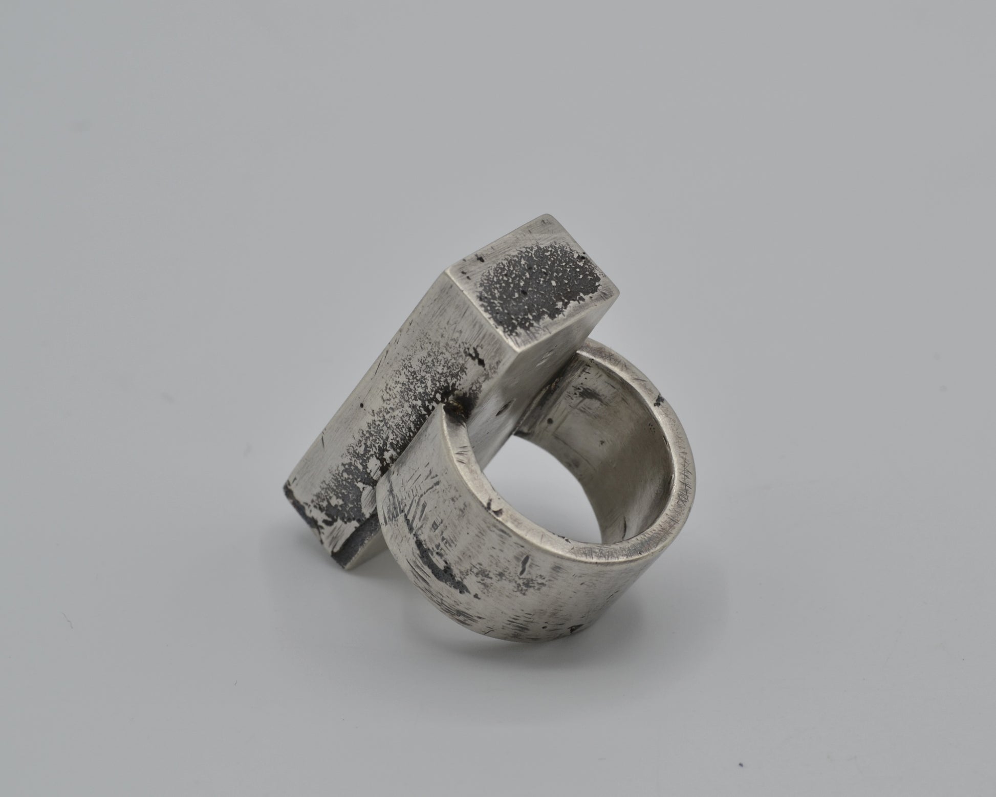 Schwerer, brutalistischer Statement-Ring in Größe 56.