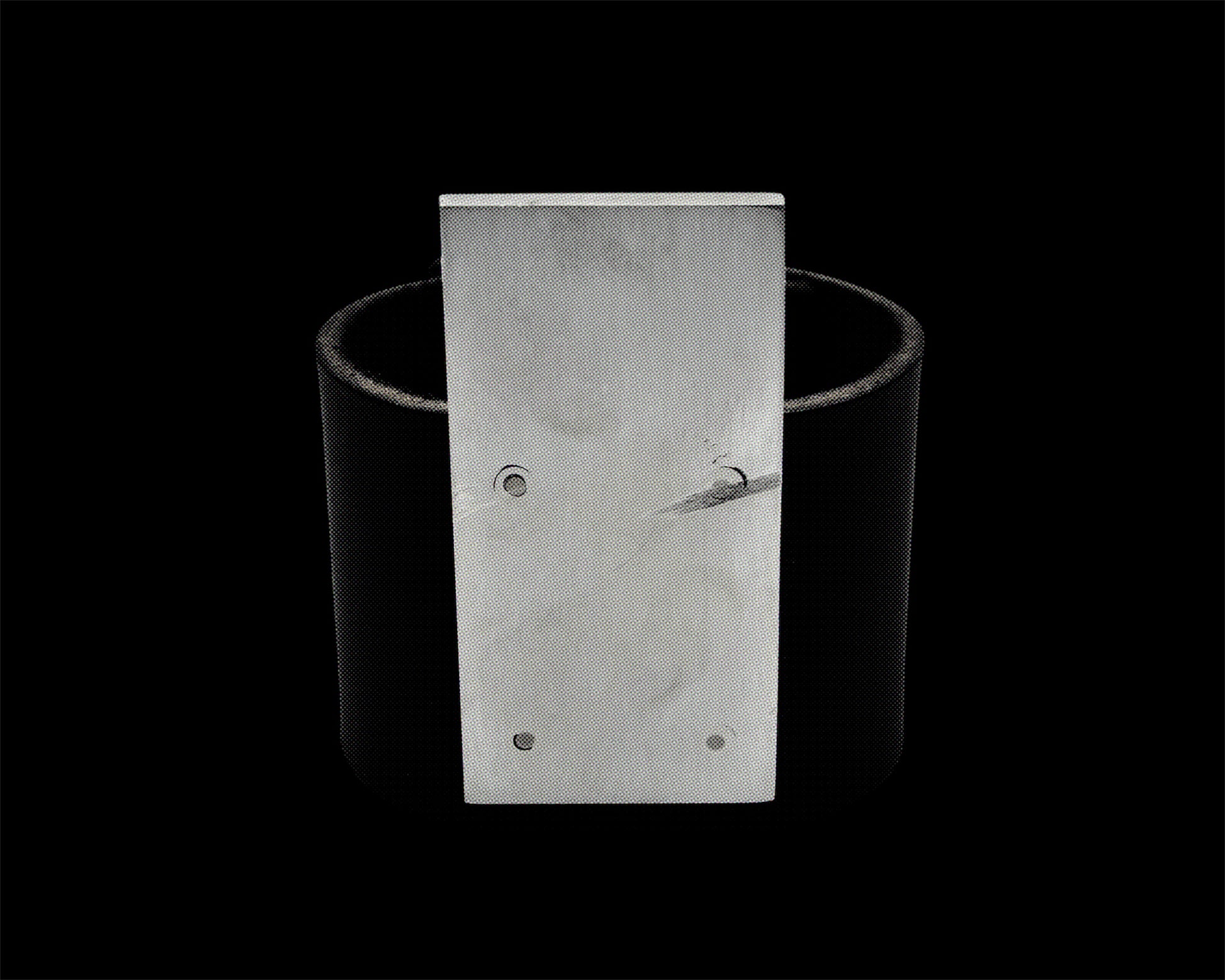 Handgefertigtes Lederarmband mit einer oben montierten Aluminiumplatte.