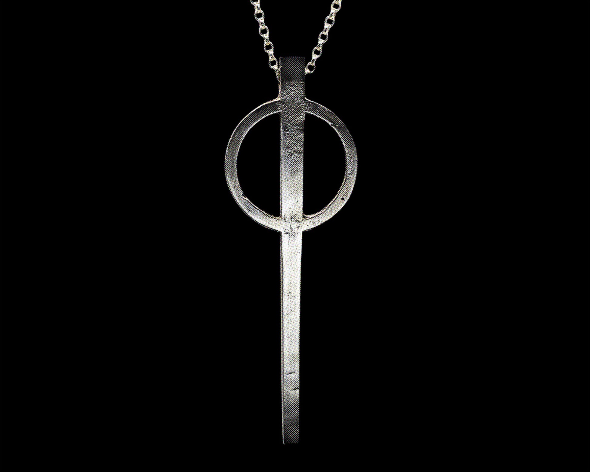 Pendentif unique en argent à la surface brossée.