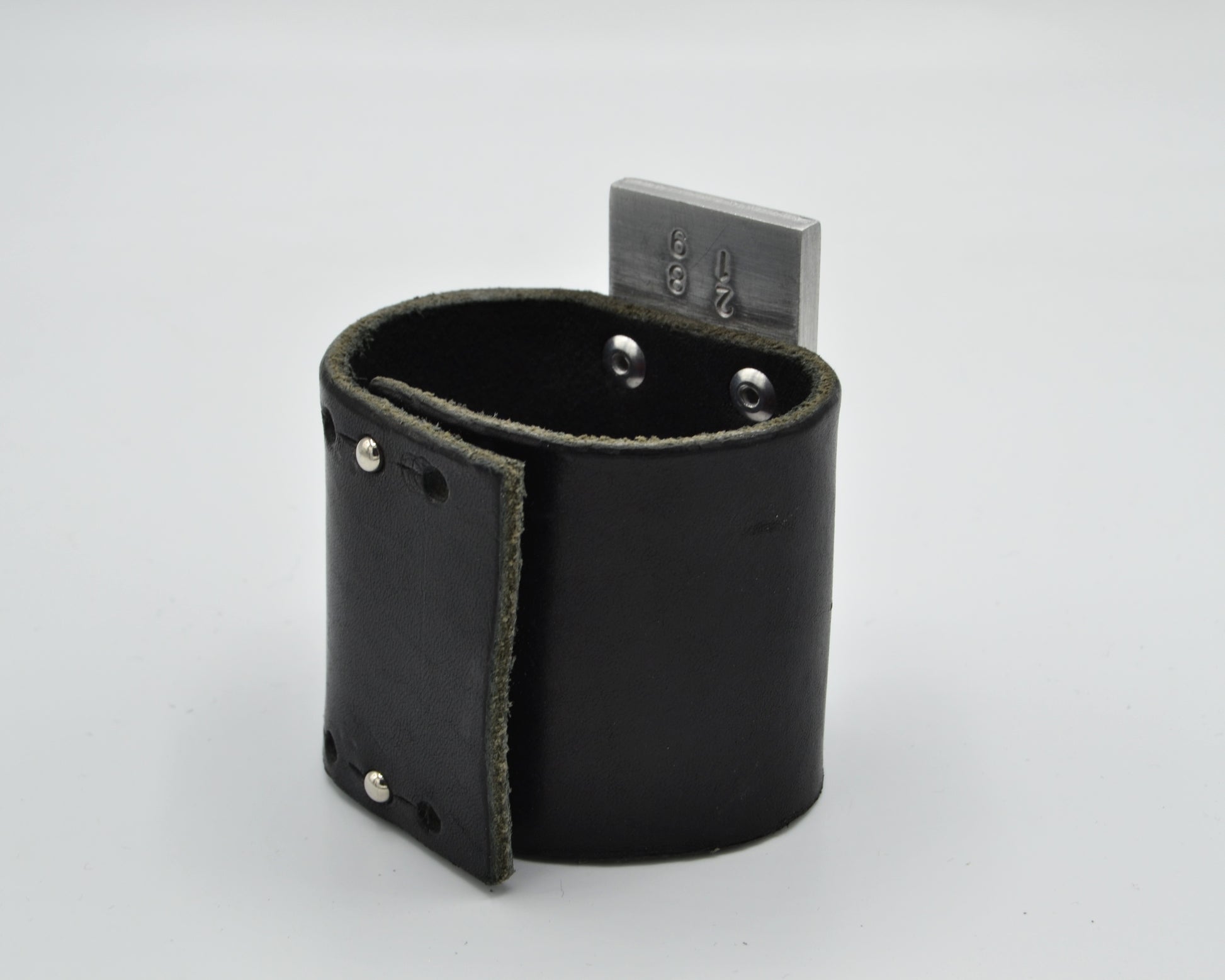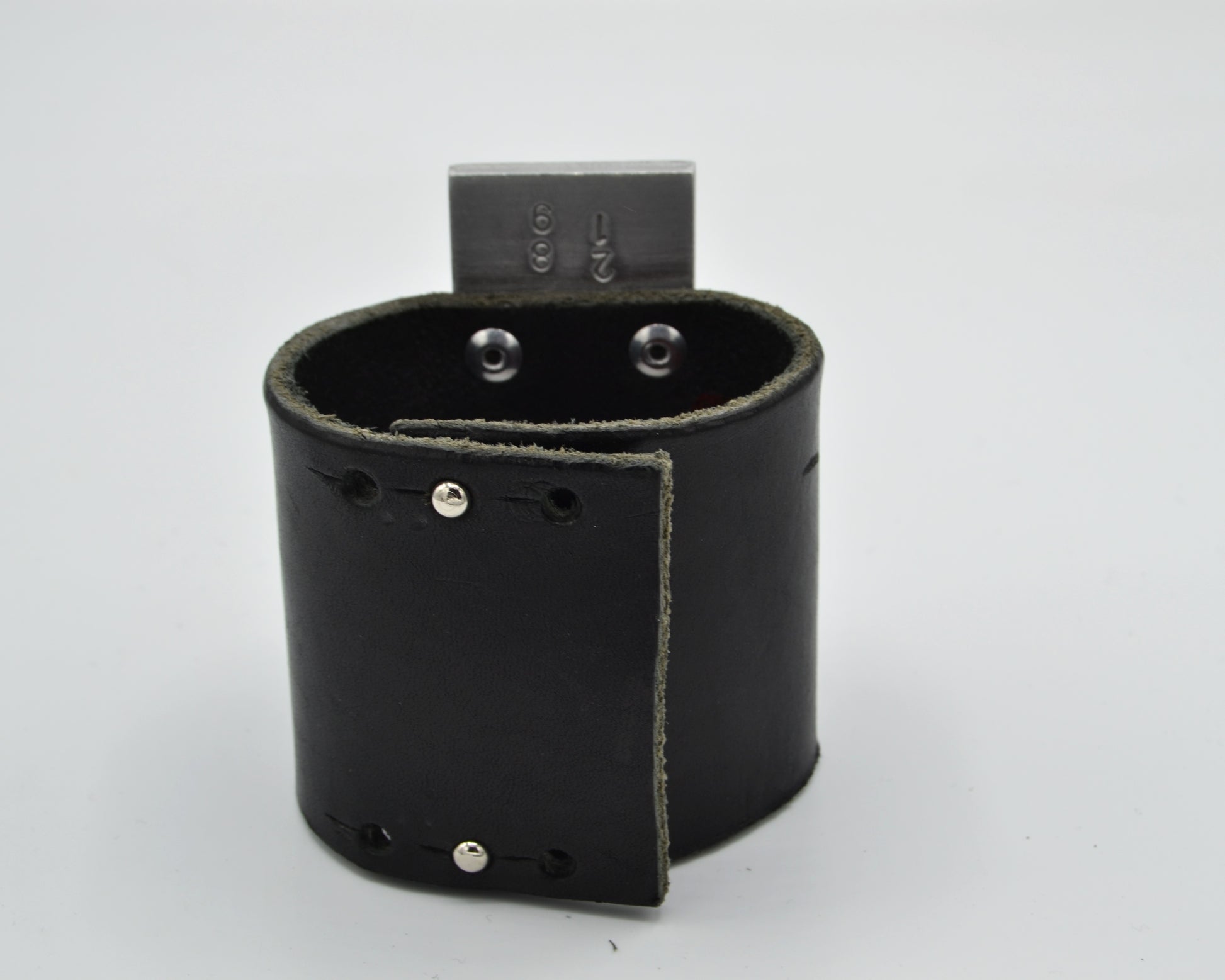 Bracelet made from upcycled cow leather with aluminum parts. 100% hand crafted.